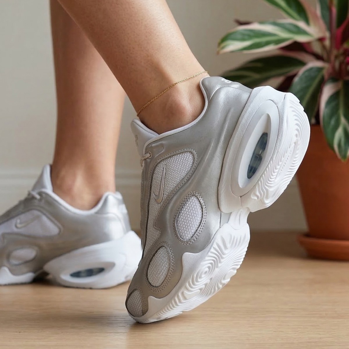 Air Max Muse, Air Max ailesinin göz alıcı ve fütüristik yeni üyesi. Abartılı oranlar, yansıtıcı tasarımlı yüzeyler ve sıra dışı bir tasarım oluşturan yüksek ayak kemeri, ayakkabıya adını veren Air teknolojisini sergiliyor. Hazır ol. Kendini yeni yollarla ifade edebileceğin bir dönem başlıyor.