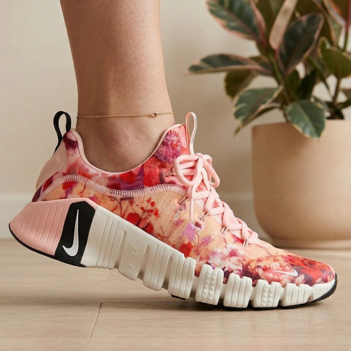 Free Metcon 6, egzersiz olanaklarınızın dünyasını genişletiyor. En uyarlanabilir antrenman ayakkabımıza daha fazla ön ayak esnekliği ekledik ve topuğu ekstra köpükle güçlendirdik. Bu, plyometrik ve kardiyo dersleri sırasında dinamik hareketler için daha fazla özgürlük ve ağırlıklar için ihtiyacınız olan sağlam tabanı anlamına geliyor. Çiçek temalı bu tasarım, odada rahatça hareket ederken antrenmanınıza şıklık katıyor.