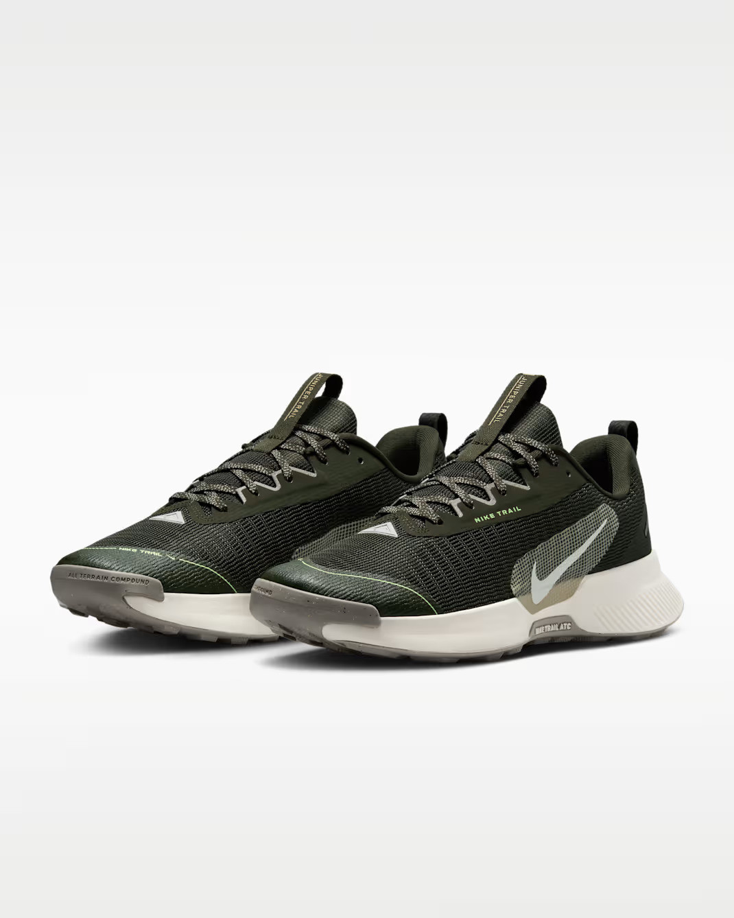 Nike Trail All Terrain Compound (ATC) kauçuk dış taban, dik yokuşlarda ve yağışlı havalarda gelişmiş kavrayış sağlarken yolda yumuşak bir kullanım deneyimi sunar.