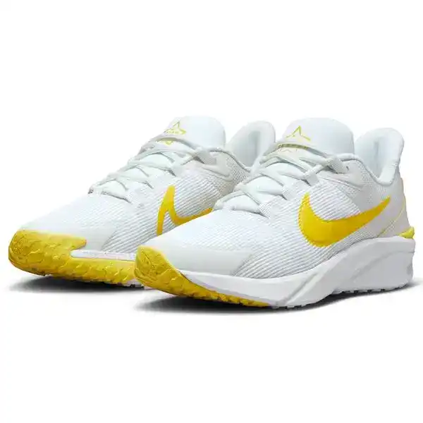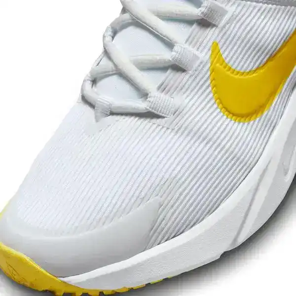 Dondurma almaya koşarken, ebelemece oynarken ve sokağın sonuna kadar yarışırken vakit kaybetmemen için hızlıca giyip çıkabileceğin Star Runner'ı geliştirdik. Orta tabandaki yumuşak yastıklama, rahat ve esnek bir yapı sunarak her zıplama, sıçrama ve adımda seni bitiş çizgisine yaklaştırır. Tutuş deseni; beton, çim ve çakıl gibi zeminleri kavrayarak ekstra kavrayış kazandırır. Kauçukla sarılı burun kısmı ise aynı Star Runner ile daha uzun süre eğlenebilmen için yapıyı sağlamlaştırır.
