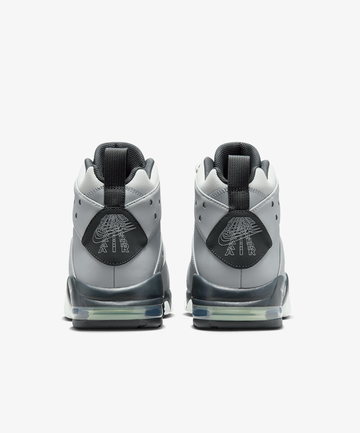 Bu versiyon, açık ve koyu tonlara bölünmüş gri tonlarında deri bir yapıya sahip ve ağırlığı azaltmak için deliklerle süslenmiş. Yanal tırtıklı desenleri işlemeli bir marka etiketi süslerken, topuk panelini üst üste binen "Nike Air" desenleri süslüyor. Koyu gri orta taban, arkada bir Swoosh logosuna sahipken, ön ayaktaki yükseltilmiş diş benzeri yan duvarlar yandan yana denge sağlıyor. Görünür bir Air Max ünitesi, maksimum yastıklama için topukta yer alıyor. Sağlam dış taban, çeşitli yüzeylerde dayanıklı tutuş sağlıyor.