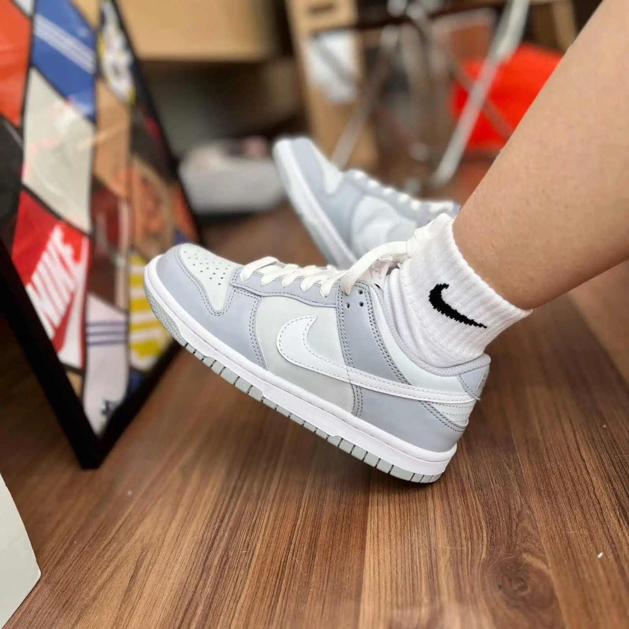- İkonik Nike logosu ve gri renk kombinasyonu