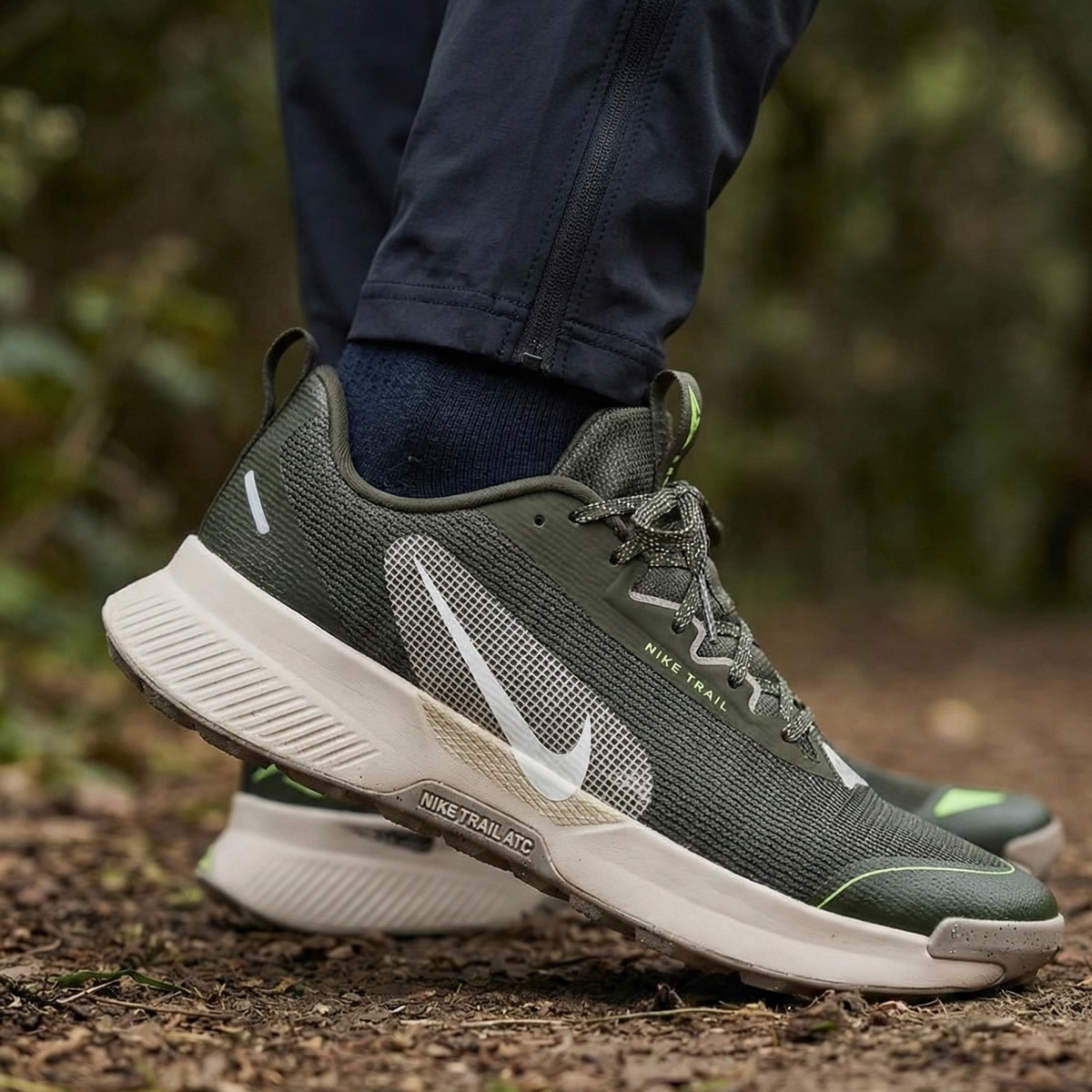 Nike Trail All Terrain Compound (ATC) kauçuk dış taban, dik yokuşlarda ve yağışlı havalarda gelişmiş kavrayış sağlarken yolda yumuşak bir kullanım deneyimi sunar.