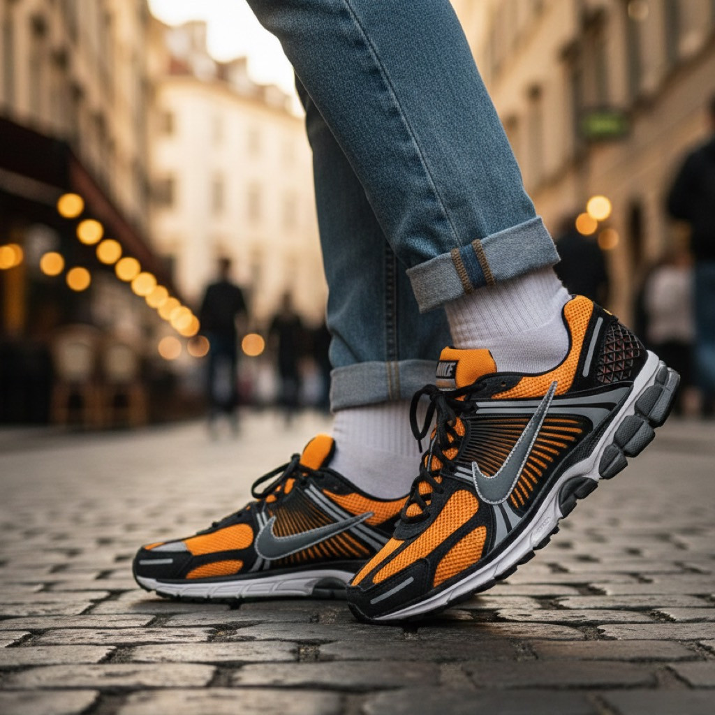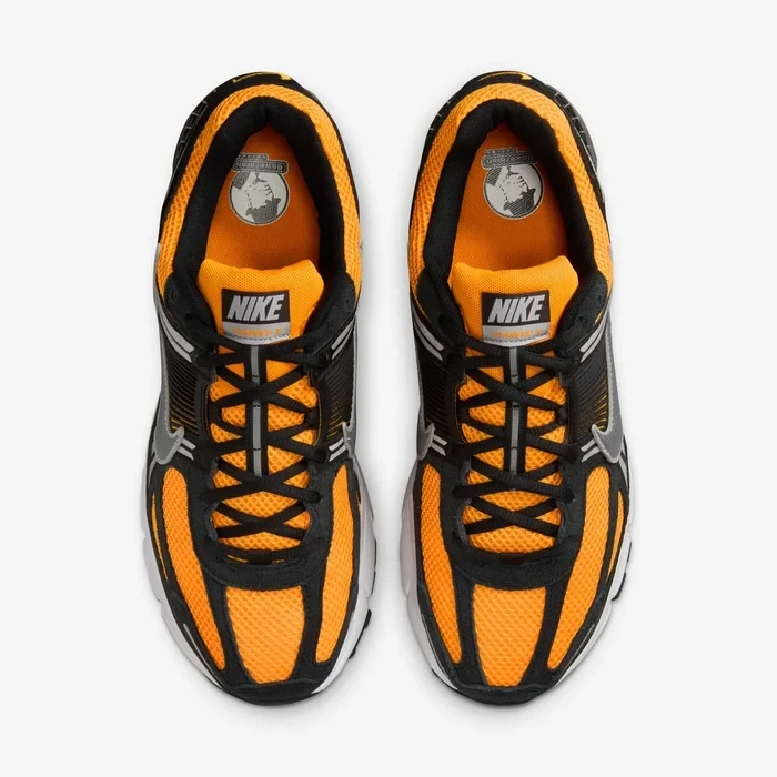 Nike, Zoom Vomero 5 silüetini "Güneş Saati" renk paletiyle tanıttı . 2025 İlkbaharında piyasaya sürülmesi planlanan bu canlı model, gümüş detaylı siyah süet kaplamalarla dengelenmiş keskin turuncu file tabanla üretildi. Koyu metalik gümüş, siyah TPU kafesin üzerinde yer alan deri panel swoosh'unda da yer alıyor ve dil etiketi, Bill Bowerman damgalı iç tabanlar ve turuncu işlemeli mini topuk çizgisi gibi diğer marka vurgularıyla birlikte sunuluyor. Spor ayakkabı, beyaz Cushlon orta taban ve siyah, gri ve beyaz Zoom Air dış taban üzerine otururken, siyah bağcıklar şık bir görünüm için ayakkabıyı birbirine bağlıyor.